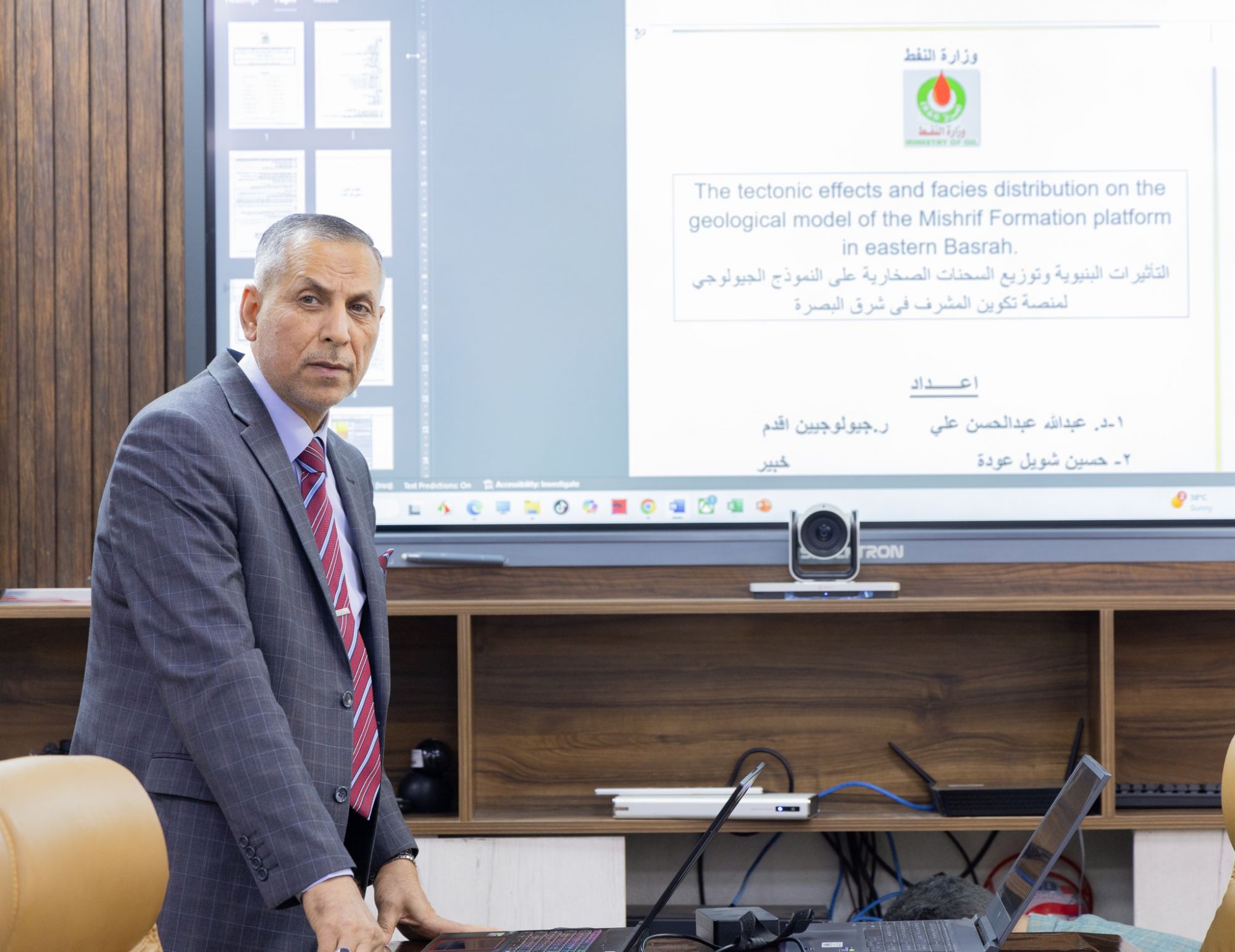 تنفيذاً لتوجيهات السيد مدير عام شركة الاستكشافات النفطية الدكتور أسامة رؤوف حسين نظّمت شركة الاستكشافات النفطية، يوم الأربعاء 3 أيلول 2025، ورشة عمل فنية في قاعة الدبوني بحضور أعضاء الفريق الوزاري من شركتي الاستكشافات النفطية ونفط البصرة، لمناقشة النتائج المرحلية للدراسة الموسومة (التأثيرات البنيوية وتوزيع السحنات الصخرية على النموذج الجيولوجي لمنصة تكوين المشرف في شرق البصرة)، وذلك برئاسة السيد معاون المدير العام الشؤون الإدارية الخبير حسين شويل عودة ،