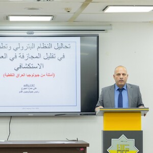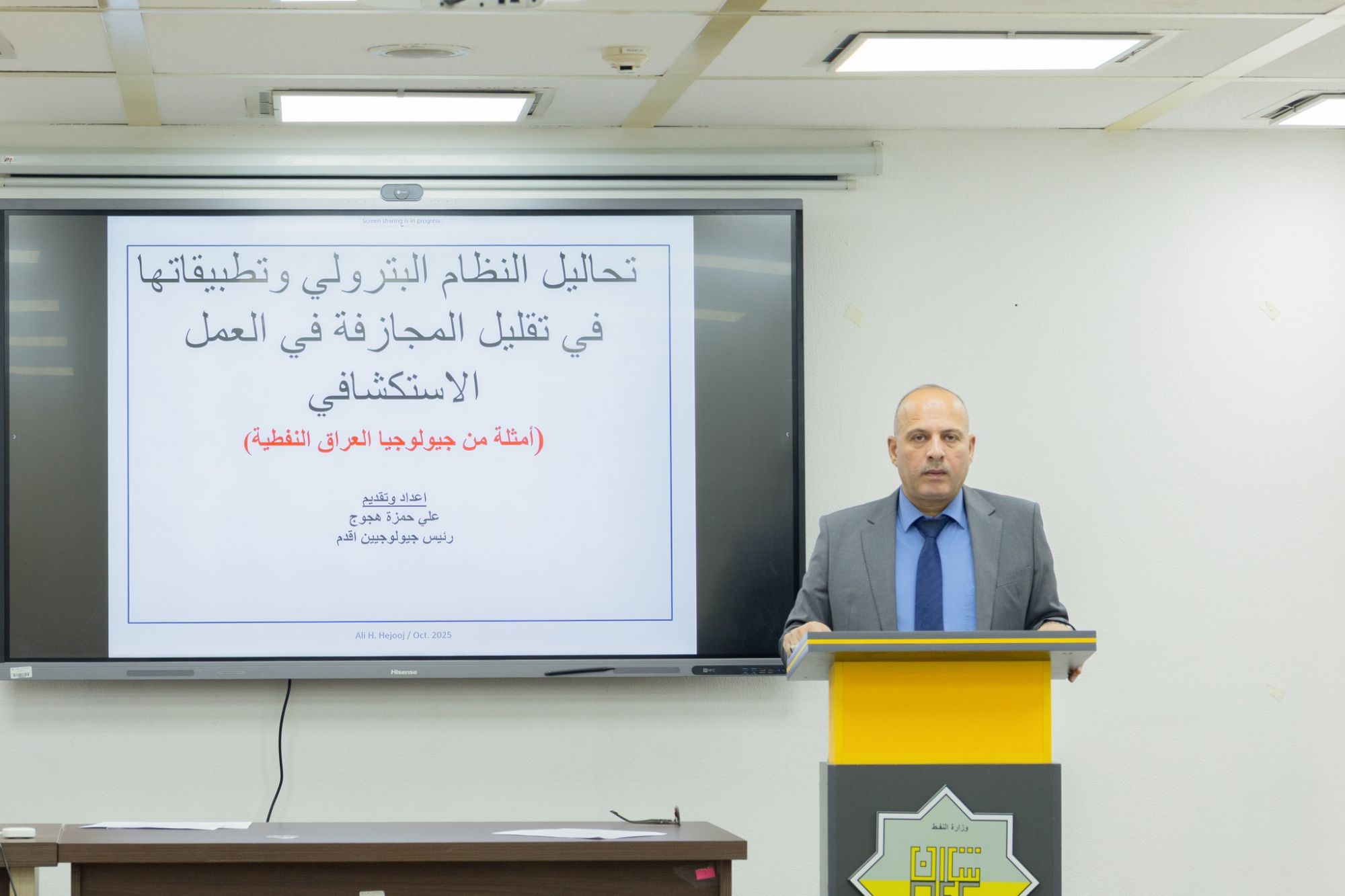 تنفيذا لسياسة شركة الاستكشافات النفطية و توجيهات السيد المدير العام الدكتور اسامة رؤوف حسين لبذل الجهود لغرض النهوض بالمستوى الفني للعاملين في شركتنا واعتماداً على الجهود والموارد الذاتية اقامت هيأة الجيولوجيا والجيوفيزياء وبالتنسيق مع قسم التدريب والتطوير الدورة التدريبية الموسومة ((تحاليل النظام البترولي وتطبيقاتها في تقليل المجازفة في العمل الاستكشافي )) للفترة ( 5 – 19 / تشرين الاول / 2025 ) اعدها وقدمها السيد مدير هيأة الجيولوجيا والجيوفيزياء الاستاذ علي حمزة هجوج وتناولت الدورة استعراض عناصر وعمليات النظام البترولي والطرق الفنية لتوصيف المجازفات الاستكشافية .وقدم المحاضر امثلة وتمارين عملية من جيولوجيا العراق النفطية .شارك في الدورة عدد من الجيولوجيين والجيوفيزيائيين ومهندسو النفط . وفي ختام الدورة تم توزيع شهادات المشاركة على السادة المشاركين .