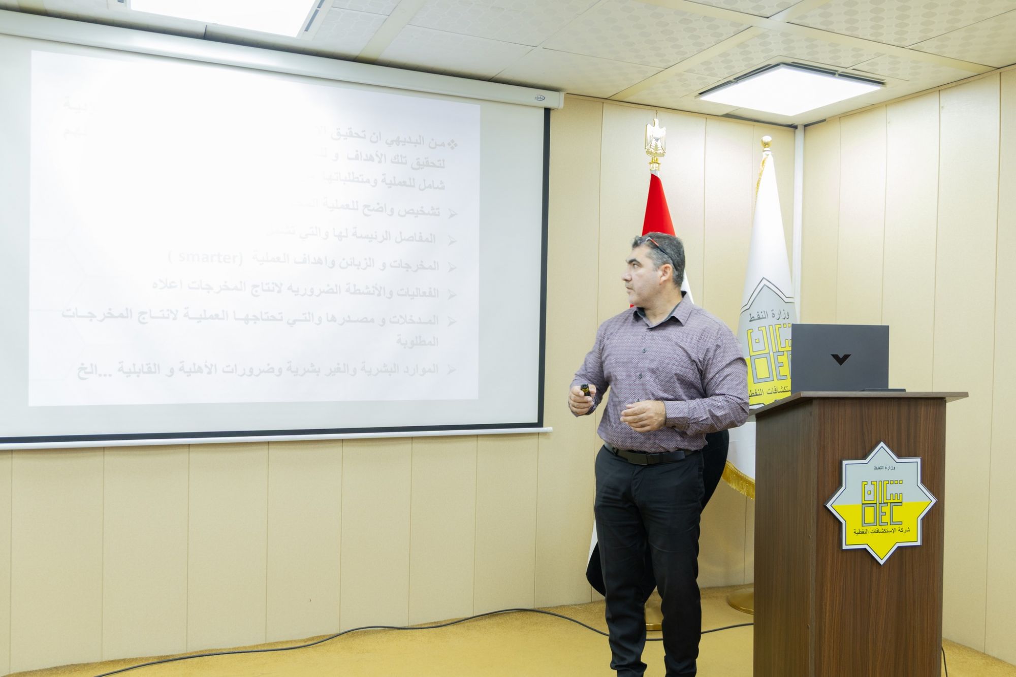 قدّم الورشة مسؤول شعبة إدارة الجودة في الشركة، السيد مهند ياسين مهدي، حيث تناول خلالها أهمية ترسيخ ثقافة إدارة المخاطر المؤسسية وتوثيقها بشكل فعّال، بما يسهم في تحسين الأداء وتقليل حالات التعرض للمخاطر المتعلقة بعمليات المنظمة وتحقيق أهدافها .